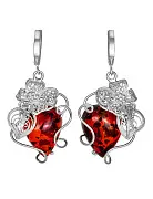 Подвеска создана из натурального балтийского янтаря насыщенного вишнёвого цвета с красивыми искорками, который обрамлен благородным серебром с искусным филигранным орнаментом.
