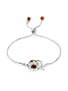 Тонкий браслет-цепочка с котёнком из натурального янтаря коньячного цвета «Чешир»: 307706065