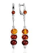 Изысканный серебряный браслет с бусинами из натурального янтаря тёплых оттенков «Карамель»: 507721126