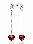 Нежные серьги-гвоздики «Сердце» с янтарём на цепочках | 3 390 руб. * 1 шт |