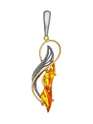 Изящная оправа обвивает камень плавной золотой линией, а серебряный элемент с текстурой добавляет композиции глубину и динамику. Контраст металлов подчёркивает форму янтаря и делает дизайн более выразительным.