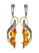 Эти серьги словно сотканы из линий света и металла. Янтарь вытянутой формы переливается красивыми золотистыми оттенками, создавая эффект внутреннего свечения, которое меняется при каждом движении.