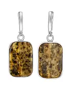 Серьги, в которых природа стала художником. Контрастные пластины натурального балтийского янтаря сочетают глубину с графичными черными прожилками, формируя настоящий мини-пейзаж в каждом экземпляре. Как эффектные арт-объекты, они органично оправлены в лаконичное серебро 925 пробы, чтобы не отвлекать внимание от главного — игры фактур и оттенков.