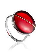 Серебро и золото 585° Натуральный янтарь Алый оттенок