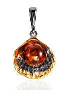 Жемчужина Балтийского моря — тёплая сияющая бусина из натурального балтийского янтаря медового цвета, примостившаяся в изящной раковине из тёмного серебра с позолотой — смелый и необычный образ, воплощенный нашими ювелирами. Купите это оригинальное и яркое украшение, и оно станет изюминкой вашего образа.