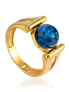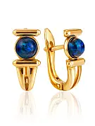 Лёгкие серьги из серебра в позолоте с цельным янтарём, тонированным в синий цвет «Аркадия»: 410107194