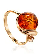 Дополните серьги красивым кольцом «Лебедь» с янтарём коньячного цвета и соберите яркий комплект украшений.