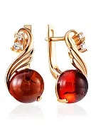 Серьги из позолоченного серебра, украшенные вставками из натурального цельного янтаря коньячного цвета и фианитами «Лебедь»: 710106072