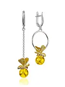 Эффектные асимметричные серьги из золочёного серебра с натуральным цельным янтарём золотисто-лимонного оттенка «Винни Пух»: 310109130