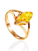 Нежное кольцо из позолоченного серебра с ярко-лимонным янтарём «Подснежник»: 510020045