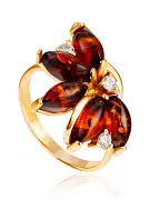 Роскошное кольцо в виде нарядного цветка украшено вставками из натурального балтийского янтаря коньячного цвета и цирконами. Надевая это кольцо вы превратите любой свой день в праздник красоты и радости.