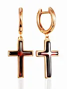 Стильные позолоченные серьги London с крестами из вишнёвого янтаря | 3 690 руб. * 1 шт |