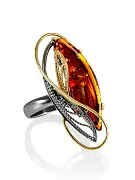 Роскошное кольцо из филигранного позолоченного серебра и ярко-коньячного янтаря «Филигрань»: 410012191