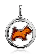 Небольшая подвеска из серебра и натурального янтаря коньячного цвета «Собачка»: 201712182