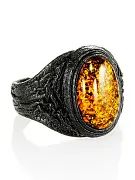 Кожаное кольцо с крупным переливающимся янтарём: 113306346