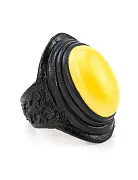Крупное кольцо-перстень из натуральной кожи с ярким медовым янтарем овальной формы: 608201048