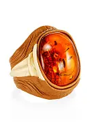 Кожаное кольцо с крупным переливающимся янтарём коньячного цвета «Амазонка»: 213310104