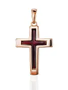Стильный лаконичный крест из позолоченного серебра и ярко-вишнёвого янтаря идеально впишется в любой ваш образ, добавив ему одновременно и капельку дерзости и капельку сдержанной элегантности.