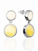Мягкий диалог двух светил. Верхний круг — молочная заря, спокойная, как туман над Балтикой; нижний — лимонный полдень, тёплая монета застывшего солнца. Гладкое серебро, похожее на прохладную воду на рассвете, бережно обнимает янтарь и отражает каждый шаг. Подвижная подвеска даёт украшению дыхание: серьги едва заметно качаются и чертят в воздухе тонкие орбиты света. Янтарь не сияет напоказ — он светится изнутри, будто память о летнем ветре и солёном прибое. Это украшение про тишину и уверенность, про геометрию, где ничего лишнего: только круг и свет. Надень — и почувствуешь рядом море: в прохладе металла, в тёплом оттенке полудня, в том, как свет задерживается на тебе чуть дольше, чем обычно.