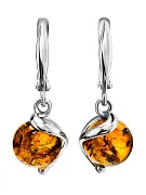 Небольшие красивые серьги из серебра с янтарём коньячного цвета «Марс»: 006509263