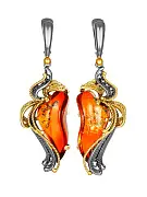 Серебряное кольцо с натуральным искрящимся янтарём коньячного цвета и изящной сканью «Филигрань»: 410012126