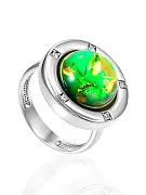 Стильное кольцо из серебра с натуральным янтарём ярко-зелёного цвета и кристаллами «Ампир»: 406309116