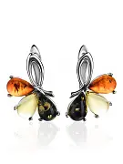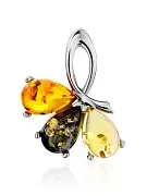 Это замечательное кольцо сочетает в себе нежный дизайн с цветочными мотивами и солнечную яркость вставок из натурального балтийского янтаря трёх цветов: лимонного, зелёного и коньячного. Такое украшение будет способствовать созданию у вас позитивного летнего настроения вне зависимости от того образа, который вы выберете.