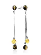 Милые женственные серьги из натурального янтаря на изящных цепочках добавят вашему образу лёгкости и кокетства. Пусть летнее настроение сопровождает вас, куда бы вы ни отправились.