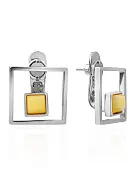 Стильные серьги-гвоздики из серебра и натурального янтаря нежно-медового цвета «Гравитация»: 208710292