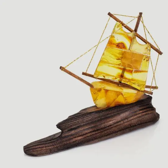 Этот замечательный кораблик привёз с собой яркие впечатления и удивительные истории о дальних путешествиях, удивительных странах и красивых традициях. Изсканный и оригинальный сувенир украсит ваш интерьер, наполнив его свежим морским ветром и солнечным янтарным светом. А ещё, такой талисман непременно поможет вам осуществить ваши мечты о путешествиях.