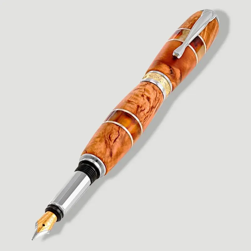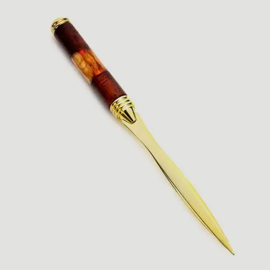 Ручка из натурального янтаря и дерева в настольной подставке из цельного янтаря