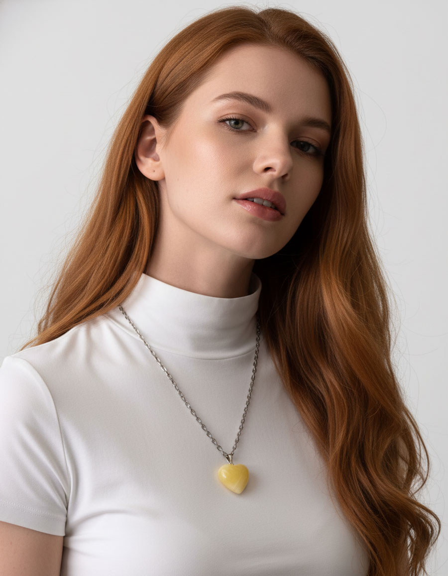Форма сердца - это единственный визуальный символ, который понятен без перевода. Надевая колье с янтарным сердцем, вы словно транслируете миру: «В моей душе живет солнце».